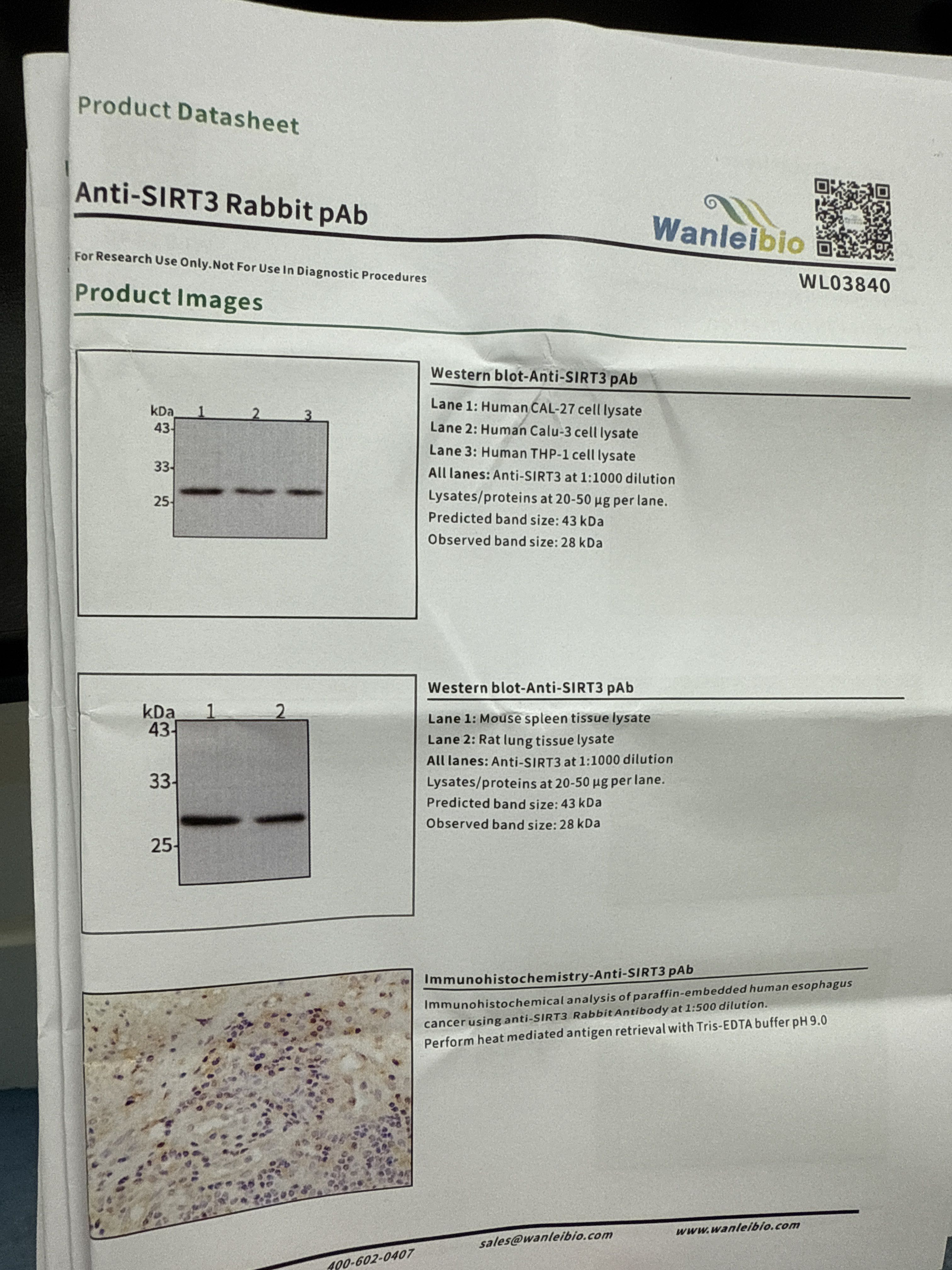 条带位置很准确,清晰,无杂带,很不错的抗体。