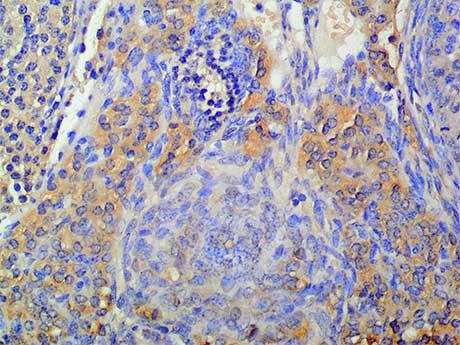 Galnt2, a member of glycosyltransferase 2 protein family, initiates mucin O-glycosylation of peptides in Golgi matrix. Galnt2, a GalNAc transferase involved in O-linked glycosylation, can regulate the risk of atherosclerotic dyslipidemia (a specific marker of insulin resistance), and act as a positive regulator of insulin signal in human hepatocytes by down regulating ENPP1. It may participate in the O-linked glycosylation of the hinge region of immunoglobulin A1, and may also affect the level of triglycerides, which may be related to type 2 diabetes and several cancers.